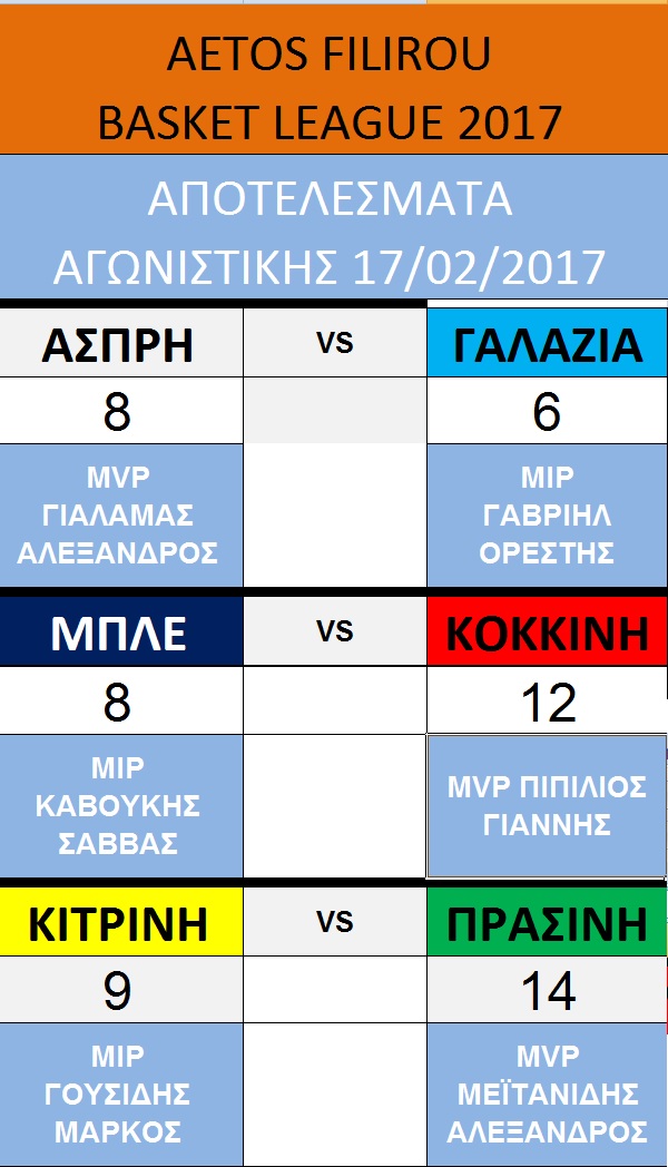 Ακολουθούν τα αποτελέσματα στα οποία περιλαμβάνονται και οι MVP – MIP, η βαθμολογία με τα αντίστοιχα στατιστικά και η επόμενη αγωνιστική.