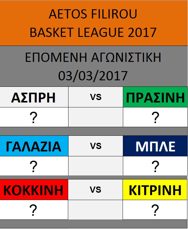 Την Παρασκευή 24/02/2016 πραγματοποιήθηκε η 4η Αγωνιστική του ΑΕΤΟΣ Basketball League. Μετά τους αγώνες, άλλαξαν οι ισορροπίες στη 2η θέση του βαθμολογικού πίνακα! Εντύπωση προκαλέι η πράσινη ομάδα η οποία παραμένει αήττητη έως τώρα…