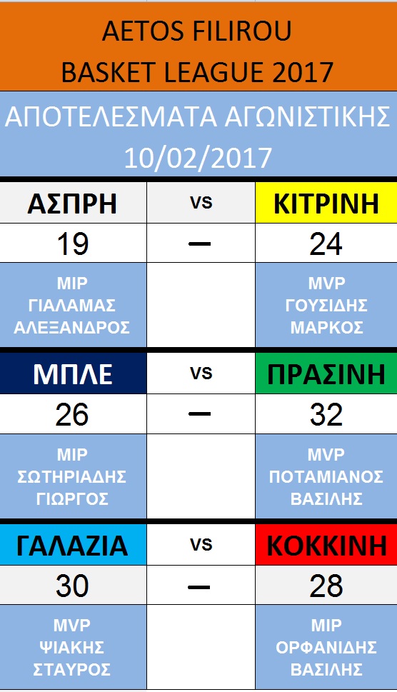 Ακολουθούν φωτογραφικά στιγμιότυπα, τα αποτελέσματα στα οποία περιλαμβάνονται και οι MVP – MIP, η βαθμολογία με τα αντίστοιχα στατιστικά και η επόμενη αγωνιστική στην οποία αναμένουμε κυριολεκτικά ΤΡΙΑ ΝΤΕΡΜΠΥ καθώς θα παίξουν οι ισοβαθμούντες ομάδες μεταξύ τους!!!